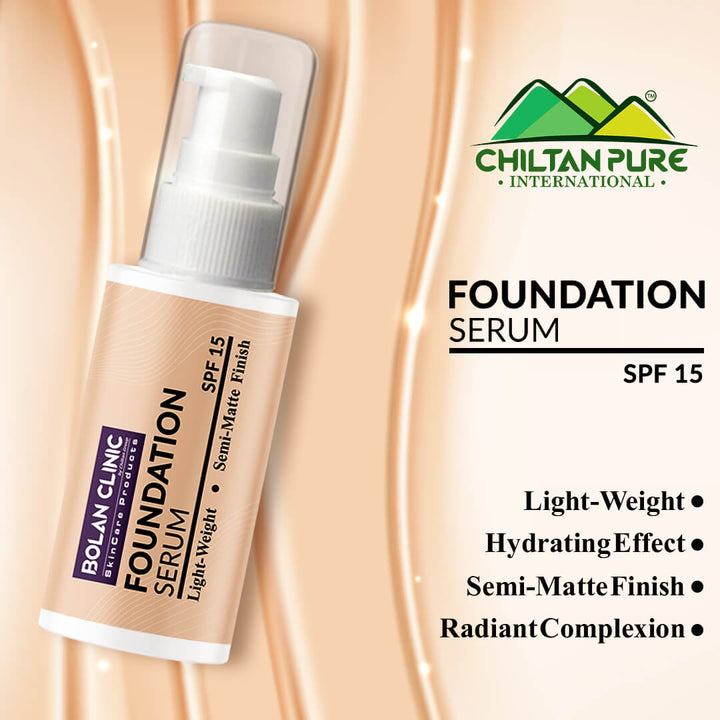 - Bolan Clinic Foundation Serum improves skin tone and gives the illusion of a more lively, lovely complexion. It has SPF15 to help prevent pigmentation brought on by UV rays.
