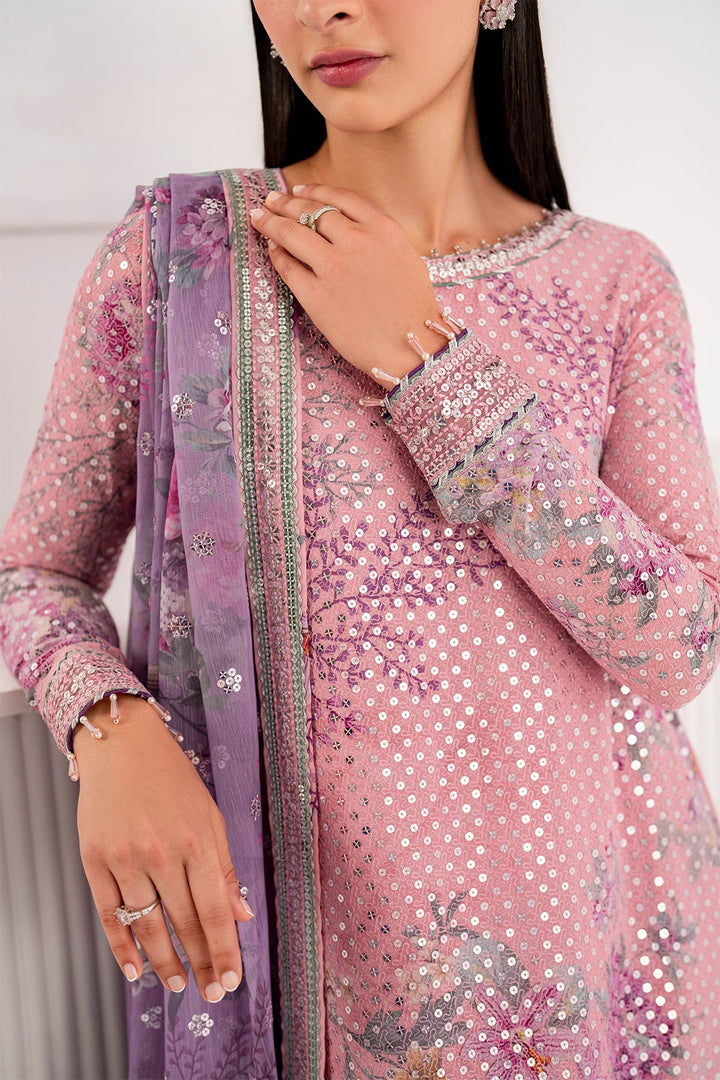 EMBROIDERED CHIFFON UC-3061 features a stunning digital print on georgette chiffon fabric, with intricate embroidery on the front, back, and sleeves for a touch of elegance. The organza dupatta is also digitally printed and beautifully embroidered. Paired with a dyed rawsilk trouser, this outfit is perfect for any special occasion.