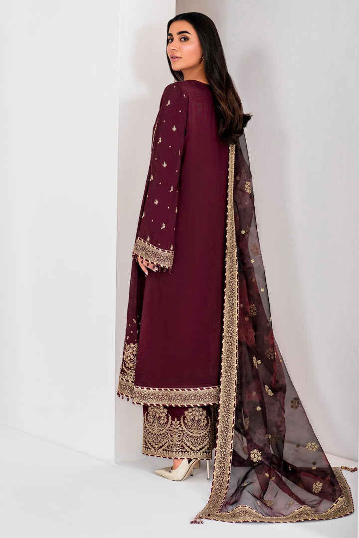 Expertly crafted from luxurious Korean raw silk, the UR-7028 showcases stunning embroidery on the front panel, side panels, and sleeves, as well as a matching dupatta and trousers. The perfect choice for a formal occasion, this outfit exudes elegance and grace.
