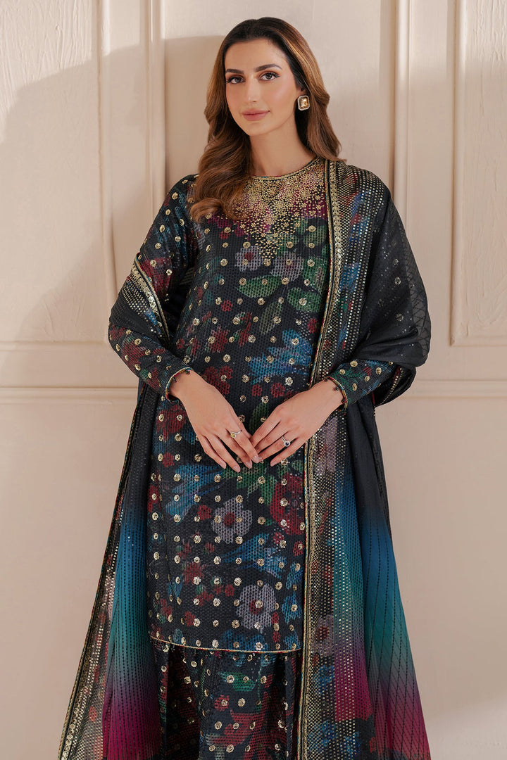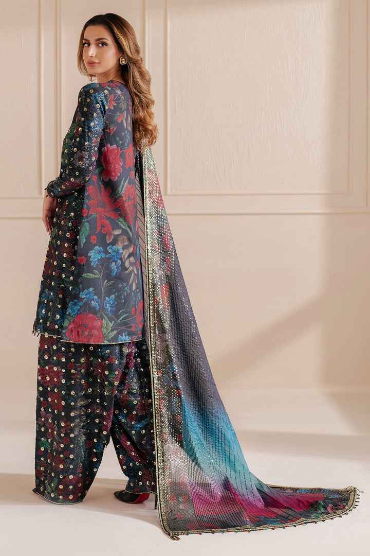 The Embroidered Raw Silk UR-7051 is a luxurious addition to your wardrobe. The digital printed embroidery on the rawsilk front, sleeves, bottom, and dupatta border adds a touch of elegance to the outfit. The tissue silk dupatta and rawsilk back complete the look, making it perfect for any formal occasion.