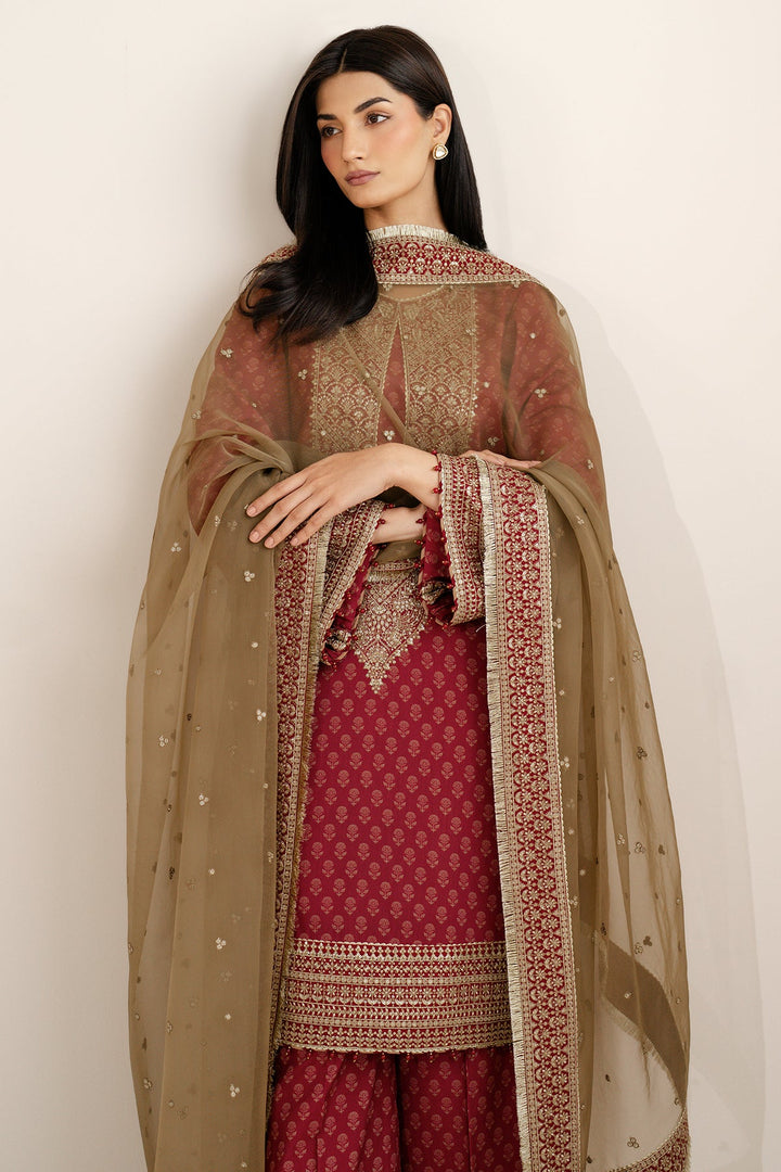 Crafted from luxurious raw silk, the UR-7057 features intricate digital prints and delicate embroidery. With embroidered borders on both front and back, along with sleeves and a dupatta, this ensemble exudes sophistication. The digital print on the back and sleeves adds a modern touch to this traditional design.